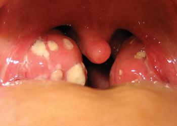 High fever, swollen or pus-covered tonsils
